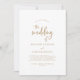 Den här guld-manusinbjudan är perfekt för ett landsbyggsbröllop. Den enkla och moderna designen guld och vitt har en unik, handskriven kalligrafiskrift med en contemporary minimalistisk boho stil. Anpassade i alla färg. Behålla designen minimal och förenklad, eller anpassa den genom att lägga till egna bilder och teckningar.