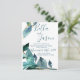 Skriptbröllopsinbjudan för elegant Blue Lövs Inbjudan Vykort