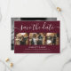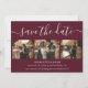 Skriptburgundy Bröllop-fotot spara datumkort Datumet