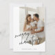 Det här fotokortet i God jul innehåller handskrivet skript med calligrafi och 1 bågfoto på framsidan. Infoga dina favoritfoton, lägg till en personlig beröring med ditt eget hjärtliga meddelande och anpassa det efter dina önskemål. Foton efter prostooleh / Freepik.