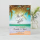 Beach med handflatan, sol, sträng ljus och skript. Spara det datum som kan anpassas med ditt namn på ett bra sätt.Välj knappen "anpassa" om du vill ändra teckensnittet stil, färg och storlekt.