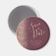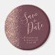 Det lämnat kant i eleganten Spara datum magneter har ett faux glitter gräns i ro guld. Anpassadet kombinerar handskriftsskript för ro rosa med serif-teckensnitt på en burgundisk bakgrund.