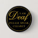 Visning dina speciella behov i stil med den här eleganten med ett svårt hörselmärke av JessicaAmber. Den här knappen har parollen "Hej I är döv, snälla, tala klarspråk" på vackra serif och script typsnitt. Du kan redigera texten efter behov. Det finns ett minimalistiskt system för svart och guld färg. Underbar till bära vid formella evenemang som bröllop eller födelsedagar. ⭐ Om du vill ha mer stift för funktionshinder kan du besöka min butik: Zazzle.com/Elder_Vitality ⭐ För anpassningsbar order, meddela mig på Zazzle