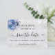 Skriptet födelsedagsfest silver blå blommigtar gli spara datumet