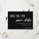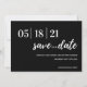 Sprid nyheterna om ditt bröllop-datum med det här klassens svarta och vita spara datumkortet. Med en modern kombination av fet stil och skriptteckensnitt är detta på utveckling men även tidlöst