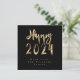 Gott nytt år 2024 Typography Elegant Black and Guld, Faux Gold Foil Text och Rand på Black Background, Modern Script, Chic New Year's Card