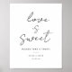 Enkel och modern design med "kärlek är sött" ett handskrivet skript i stil och parets namn och speciella datum nedan. Underbaren för bord favoriserar i bröllop. Bakgrunden till färg är anpassade.