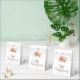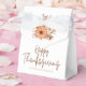 Blommigt buketter i färg av fall och informell manustypografi, Happy thanksgiving, för ett modernt drag för party favors. Blommorna och löven är i autoskalda nyanser av orange, brun och grädde. Anpassa enkelt med namnen nedan. En passande bukett är också större på baksidan.