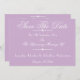 Simple Modern Chic Script Personlig Bride and Groom to be Namn Elegant Mauve and White Spara datum meddelande Card. Klicka på Anpassa den här mallen för att anpassa den med namn, giftermål-datumet, ditt meddelande om du vill ändra det angivna meddelandet och webbplatsen adress anpassas snabbt och enkelt. Enkel klassisk modern besparing av datumkort är perfekt för att meddela ditt bröllop-datum. Modern Chic Script Namn Mauve Spara datum meddelande är en del av Mauve Lilac Bröllop-samlingen i den här butiken, som erbjuder ett charmerande urval av matchande bröllop-objekt. Vacker för vår, sommar, trädgård eller badbröllop. 30 dagars återbetalningsgaranti. Fraktaser över hela världen snabbt. Modern Chic Namn Mauve Spara datum meddelande. Skapat av den ursprungliga artisten RjFxx *Copyright *Alla höger reserverade. #PersonalizedSaveTheDateAnnouncementCard #Bröllop #SaveTheDate #ZazzleMade