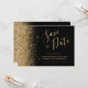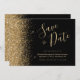 Den här elegantens lämnat kant har ett modernt datum för att spara datumkortet med ett guld faux gräns. Anpassadet kombinerar handskriftsskript av blek guld-färgad, teckenformatmall och kursivt typsnitt mot svart bakgrund. Den omvända sidan har en matchande design för svart och guld glitter.