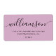 Lägg till en touch av elegans till din utgående post med dessa moderna rosa lavendel returadressetiketter med en fet skriptstil. Perfekt för familjer, bröllop, fester eller vardagsbruk, dessa anpassade fraktetiketter kombinerar stil och funktionalitet för att få varje paket eller brev att sticka ut.