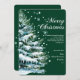 Ett vackert vattenfärgat, snö täckt, vintergrönt träd, som är med akvarium och teal och omgivet av flygande snöflingor täcker den ena sidan av detta djupa helgdag för grönt av skogar. "God jul" i ett elegant-skript toppar hälsningskortet, följt av ett personaliserbart säsong hälsning. "Bästa önskemål från" och din anpassningsbar namn och dejtar i ett vackert serif-teckensnitt. All text är helt vit för att matcha snö på grenarna av söt vattenfärgen träd. Träd, i gloriskt fullt, är centrum för kortet som också finns i grönten för djupa skogar. Varje rad och ord kan redigeras för din personliga Julhälsningar.