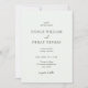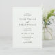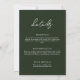 Bröllopbjudan har en minimalistisk utformning och elegant med en ren bakgrund av Grönten Sage och en förfinad typografi. Den innehåller en blandning av versaler serif typsnitt för huvuddetaljer och delikat kursivt skript för subtil toning. Utan förskönningar eller grafik skapar den välplacerade och strukturerade layouten ett tidslångt, sofistikerat och underskattat utseende.