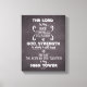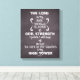 Kanvastrycken "Chalkboard Psalms KJV Bible Verse" i svartvitt. Vintage-krita inspirerade bakgrunden med vit typografi. Bibelvern från Psalms 18.2: Herren är min sten, min fästning och min beställare, min Gud, min styrka, som jag kommer att lita på, min bockler, min frälsnings horn och min höga torn. Se mer på Christian Quotes Shop.