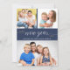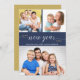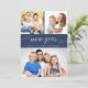 Det här platta nya årens hälsningskort ger tre foton på mörk blått bakgrund. Anpassa med foton från din favoritfamilj, 2 kvadrater och 1 vågrät. Eleganten "nytt år" visas i en kalligrafi av ett skript.