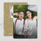 Det här moderna och enkla helgdag/julmas-bröllop-annonskortet har orden "Merry and Married" i ett trendig med ett vitt skript med kalligrafi som täcker ett utfallsfoto av fullt. Kortets baksida har en bakgrund i guld med vita snö punkter mönster. Vissa texter, mönster och bakgrund kan ändras till valfritt färg. Designade/ursprungliga teckningar efter tjock*fa*tin*i. Enkel att anpassa med ditt eget textmeddelande, namn, år, foto eller bild. Fler redigeringsfunktioner finns på sidan Redigera design. www.zazzle.com/fat_fa_tin www.zazzle.com/color_therapy www.zazzle.com/fatfatin_blue_knot www.zazzle.com/fatfatin_red_knot www.zazzle.com/fatfatin_mini_me www.zazzle.com/fatfatin_box www.zazzle.com/fatfatin_design www.zazzle.com/fatfatin_ink
