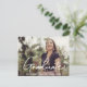 Anpassa det här moderna studenten-meddelandet till din student-bild, namn, klassår och namn. Ta också med ett speciellt hälsning och andra detaljer på baksidan. Modern typsnittstypografi, elegant och chic för ord "Student". din upphetsning med familj och vänner på din examen. Vågräts format.