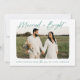 Firar din första jul som gift par med vårt gift och ljusa helgdag-fotokort! Kortet har "Gift och ljus" i ett modernt handskript i grönten. Ditt foto från vågrät bröllop visas med ett vitt, grovt kant gräns. Anpassa kortets framsida genom att lägga till en anpassningsbar hälsning med namn som visas nedan. Kortet återgår till visning med en grönt bakgrund med en vit mousserande stjärna mönster.