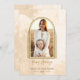 Elegant- och chic-formad fotomall som markerats med tunt glatt guld lodrät linjer med anpassningsbar och modern namnteckning "Glad helg"-skript på guld marble-bakgrunden med text fält. Baksidan har kompletterande grafik, tom anpassningsbar och extra fält.