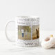 Modern familjskript Kärlek fotocollage mugg. Med ord lycka, kärlek, familj, välsignad och mer med hjärtan och kreativ. Underbar presentidé för föräldrar, mammor, pappor och morföräldrar. Fyll fotomallen med barnfoton och familjefoton. Den här designen har ett fotokollage med en söt modern perfekt för familjedesign för trendig foton med kärlek-typografi-skript, ställe dina foton och roligt väljer från Instagram till den här mallen med kvadratiska bilder med unik typografi för en trendig-känslig dricksgåva.