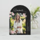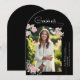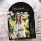 Inspirerad av en sommarrosodling har denna examensannonsering en handskriven 'examinerad' accent i signaturstil. Mjuka rosor i blekrosa skapar en vacker blandning av klassisk romantik och modern skrifttypografi. Lägg till din examinanderes foto i denna välvda ram tillsammans med ett välvt kort för en söt boho-stil examensannonsering.