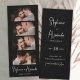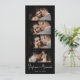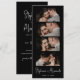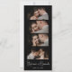 Snyggt Elegant Skriver minimalistiskt foto Booth Bookmark Bröllop spara datum-kort i svart. Med eleganten är det vita bokstäverna för calligraphy namn och 4 fotoremsor på svart bakgrund. De här sparar datumet för fotoremsan bokmärken är ett perfekt sätt att meddela alla dina vänner och din familj din speciella dag.