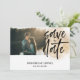 Meddela din speciella dag med tidlös elegans med skriptfotominimalistisk Spara datuminbjudan. Designad för par som uppskattar underskattad skönhet är denna inbjudan perfekten för att din upphetsning med nära och kära. En ren och modern layout med ett elegant skript-teckensnitt som betonar elegans och enkelhet. Foto +textanpassning: Visa ditt favoritfoto för förlovningen eller parets porträtt som designens mittpunkt+ anpassar datafälten på kortets framsida och baksida.