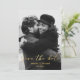 eleganten sparar datumet för guld-skriptet med ett fotomärkort med två sidokort, på andra sidan bröllop.