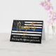 Grattis-kort för tunna blå linjepoliser i Pension. US American flagga design i Police färg, modern black blue design med eleganten "Congrats" i guld-skript. Citatet "Glöm aldrig den skillnad du har gjort". Personlig från med dina officerare namn och anpassa insidan med ditt personliga meddelande. Se vår samling för att matcha inbjudningar från tillsatta lagar pension, polisens gåvor från pension, party favors och förnödenheter. COPYRIGHT © 2020 Judy Burrows, Black Hund Art - Med alla Höger reserverade. Skriptkort för polisskript i Pension Guld