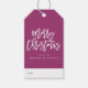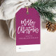 Ge din helgdag är en wow med moderna märkre för gåvor till helgdag. Märkrna i helgdag av anpassningsbar innehåller "God jul" i ett trendig-skript, lila bakgrund och gräs träd mönster på baksidan av designen.