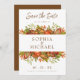 Elegantens skript Fall sparas datumna. Höstpumpkins Fall Botanicals bröllop spara datum-kort på , gröntar, .