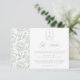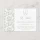Information om Sage Grönt Monogram Vapensköld Bröllop-kort: Vintage-inspirerad vapensköld av konsthantverk i monogram med typografi av grönt för elegant. Har ett chinoiseriskt blommönster för tidlös sofistikering. Elegantens skriptteckensnitt för ett formellt och klassiskt stil. Lägg till din egen webbsida med en anpassningsbar QR-kod på motsatt sida eller radera den helt enkelt för ett mer traditionellt kort.