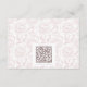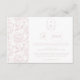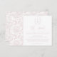 Detaljkort för Rosa Monogram Vapensköld Bröllop: Vintage-inspirerad monogramvapensköld med elegant rosa typografi. Har ett chinoiseriskt blommönster för tidlös sofistikering. Elegantens skriptteckensnitt för ett formellt och klassiskt stil. Lägg till din egen webbsida med en anpassningsbar QR-kod på motsatt sida eller radera den helt enkelt för ett mer traditionellt kort.