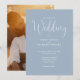 Skriptkalligrafi Foto Dusty Blue Bröllop Inbjudningar