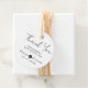 Skriptkalligrafi Tack bröllopsfavoritMärkre för bröllop. En elegant föredrar taggdesign med frasen "Tack" i svartskriptkalligrafi och namn. En svart och vit mönster i namn täcker baksidan.