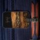 Girligt modernt bagagetagg för djurtryck i penseldrag med koppar, guld, glitter, svart och försedd med ditt skript monogram, först namn och främst.