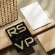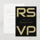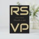 Skriptkort för elegant Guld på svart Bröllop OSA Kort