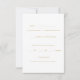 Öka dina bröllopsinbjudningar med Guld-skriptkortet i Elegant på Black. Det här sofistikerade kortet har stor "OSA" i ord, seriös text i guld mot en slimmad svart bakgrund som skapar en häpnadsväckande visuell påverkan. Skripttypografin för elegant guld för svarsdatumet för personligen lägger till ett litet förfiningsmoment till din speciella dag. På baksidan finns det gott om utrymme för din OSA, som presenteras i en kombination av guld serif och sans-serif typsnitt på en ren vit bakgrund. Lodräts layout garanterar att all information är tydlig och tillgänglig och skapar den perfekt för contemporary bröllop. Imponera dina gäster med en OSA kort för snyggt som kombinerar modern design med praktisk funktionalitet. Perfekt för svartvita händelser eller chic, det moderna firande, vår OSA kort anger tonen för ett minnesvärt tillfälle. Anpassa din i dag så att din bröllop verkligen blir exceptionell.