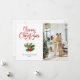 Anpassningsbar-fotokort för God jul med ett elegant-skript och holly med bär på framsidan och snöflingor längst bak. Anpassa enkelt det här moderna helgdag med foton och text.