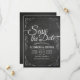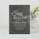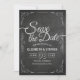 Spara mallarna för inbjudan till Eleganten Bröllopapper - Spara datumskript och Vintage White Blommigt Ram med Grunge Black Chalkboard Background. En Perfekt för din stora dag. Alla textstorlekar i stil, färg, kan ändras för att passa dina behov!