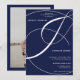 Skriptmarblå fotokalligrafi bröllop inbjudningar