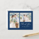 Skriptmarblå två foto-Bröllop-Tack Vykort