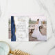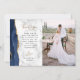 Skicka ett speciellt bröllop-tack till din familj och dina vänner med de här anpassningsbarna. Till lämnad visas ord "tack" i handskript av elegant guld-färgad typografi på en grått- och vit marmorbakgrund över ett kort, redigerbart tack till dina bröllop gäster i svart typsnitt, med namnen nedan. En marin blåfärgad agat gräns som trimmas med faux guld glitter dekorerar det lämnat kant. Baksidan ger utrymme för ett andra vågrät-foto.