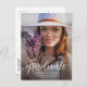 Ett vykort för studenten-annonsering i elegant innehåller ditt foto, student i ord, ditt namn, skolår och klassår på framsidan och din information på baksidan. Du kan ändra ordalydelsen på baksidan från ett meddelande till en inbjudan till studentfest. MATCHING-objekt i vår samling.