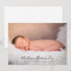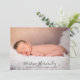 Modern baby-foto-födelsemeddelande för flicka eller pojke. Använda bara den här mallen om du vill lägga till ett eget anpassningsbar-foto på kortets framsida och baksida, av ditt eget söta baby och anpassa dig med baby namn i elegantens trendig-skripttypografi.