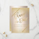 Chic gult Guld typografi på guld metallfolie i glitter i guld och faux-guld-rand ändrar chicen för bröllop i bröllop till för att tillkännage uppskjutandet av och nya planer