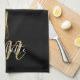 En elegant svart och guld-manuset namn kökshandduk med monogram och med en chic guld-visk. Anpassa med din första och namn för att skapa en vacker elegant. Designad av Thisisnotme©