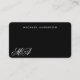 Skriptmonogram-Affärskort._x000D_ _x000D_ Ge ditt företag - ett klassiskt och rent utseende med Guld Faux Monogram Script Black Background-Affärskortet. Perfekt för företagspositioner, makeup artist, händelseplanering, stilist och mycket annat. Om du lägger till text- och affärsinformation är dessa kort redot mall. Kontakta designern för eventuella designförfrågningar. ©2010 Joshua Martin