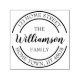En klassisk cirkulär personlig självbläckande stämpeldesign med dubbel cirkelkant och elegant skriptnamn och returadress text. Designad av Thisisnotme©