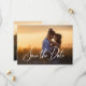 De här elegant bröllop sparar datumkorten med modern klassisk skrivstil i vita skript på framsidan som ett överlägg på fotot. Baksidan har en bakgrund för neutralt av abstrakt med boho terracotta och ett annat foto, tillsammans med en skannerbar QR-kod som lägger till webbplatsen för bröllop.